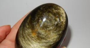 Gold Sheen Obsidian is a type of volcanic glass that exhibits a stunning golden or metallic sheen on its surface. It is a variety...