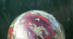 Dragon's Blood stone, also known as Dragon's Blood jasper or Dragon Bloodstone, is a type of green jasper with red or deep green splotches....