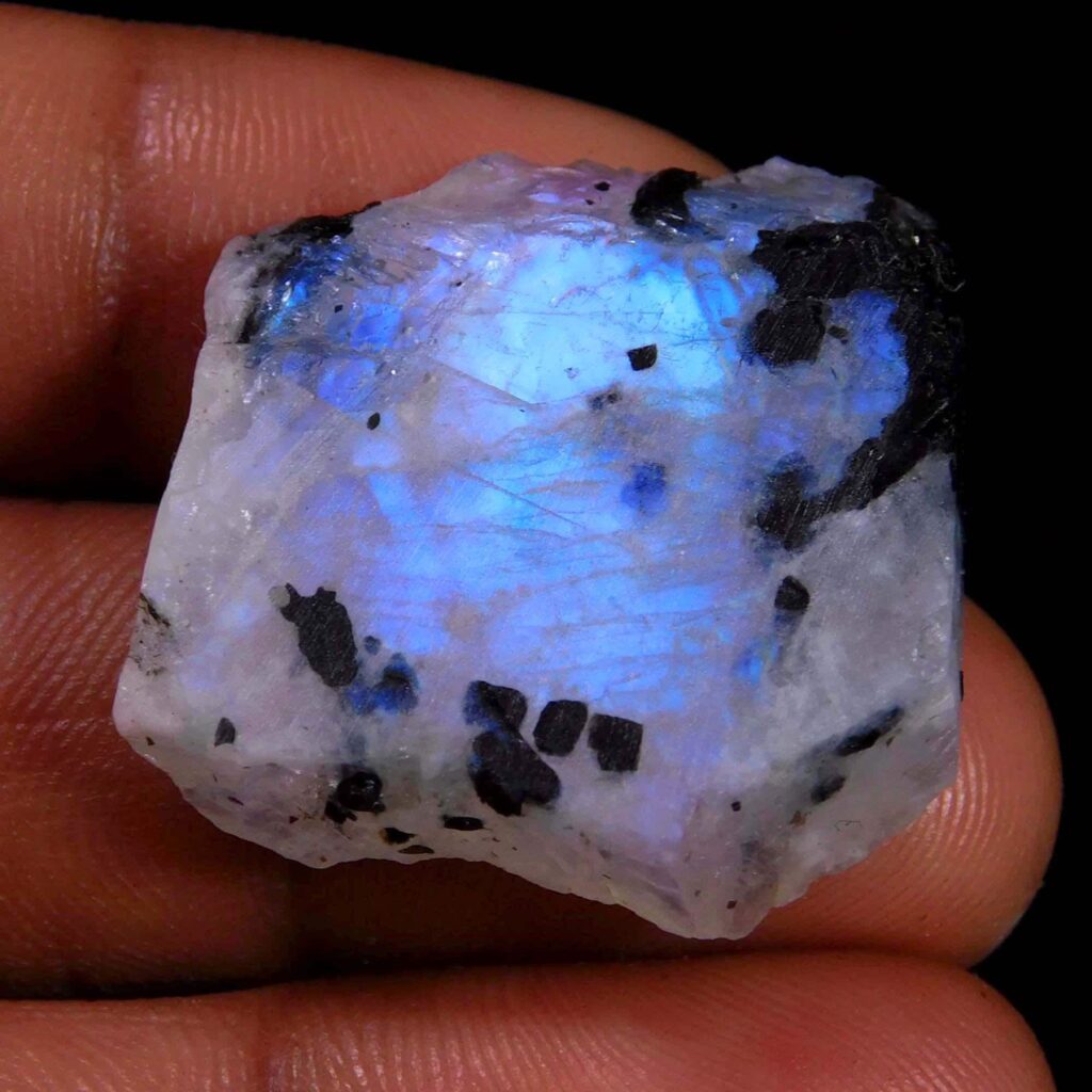 El factor más importante. La piedra lunar con un haz azul brillante y centrado es extremadamente rara y alcanza precios elevados. Las piedras que solo muestran un brillo blanco difuso son más comunes y, por lo tanto, menos valiosas. Si una gema no muestra ningún brillo flotante, no es feldespato de calidad lunar, incluso si su composición es similar.