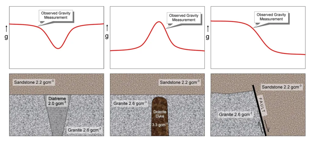 Los estudios de gravedad se basan en el principio fundamental de que las variaciones en la densidad del subsuelo provocan variaciones correspondientes en el campo gravitacional local. Materiales de alta densidad, como rocas y minerales, ejercen una atracción gravitacional más fuerte que los materiales de baja densidad como el agua o el aire. Al medir estas variaciones gravitacionales, los científicos pueden inferir la distribución de diferentes tipos de rocas y estructuras geológicas debajo de la superficie de la Tierra.