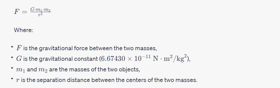 Esta ley establece que cada punto de masa atrae a todos los demás puntos de masa del universo con una fuerza que es directamente proporcional al producto de sus masas e inversamente proporcional al cuadrado de la distancia entre sus centros.
