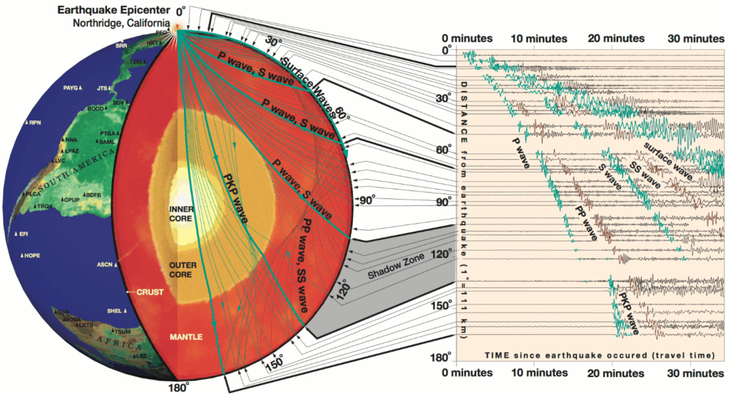 Nadie ha viajado jamás más profundo que unos Kilómetros 12 en la corteza terrestre: la profundidad del pozo superprofundo de Kola en Rusia. Sin embargo, los científicos han cartografiado el interior de la Tierra utilizando evidencia indirecta, principalmente de ondas sísmicas Producido por terremotos.