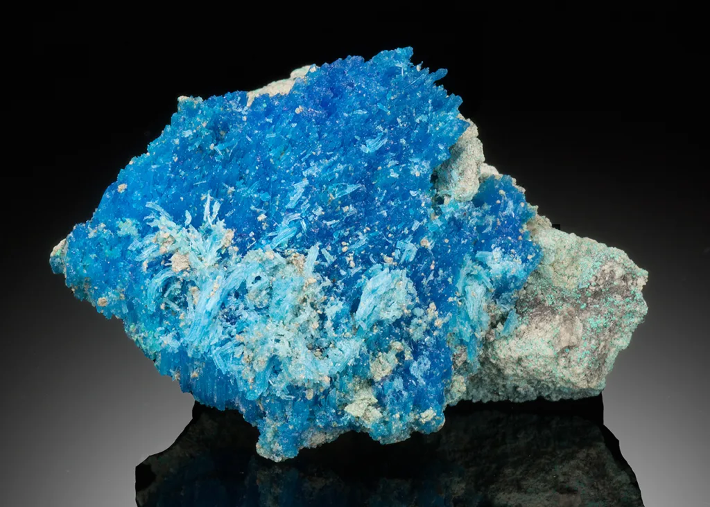 El mineral es conocido por su vibrante color azul, que puede variar desde el azul cielo hasta el celeste. A menudo se forma como producto de la oxidación. desgaste de cobre minerales, y se encuentra comúnmente en regiones áridas donde el cobre XNUMX% están expuestos al aire y la humedad.