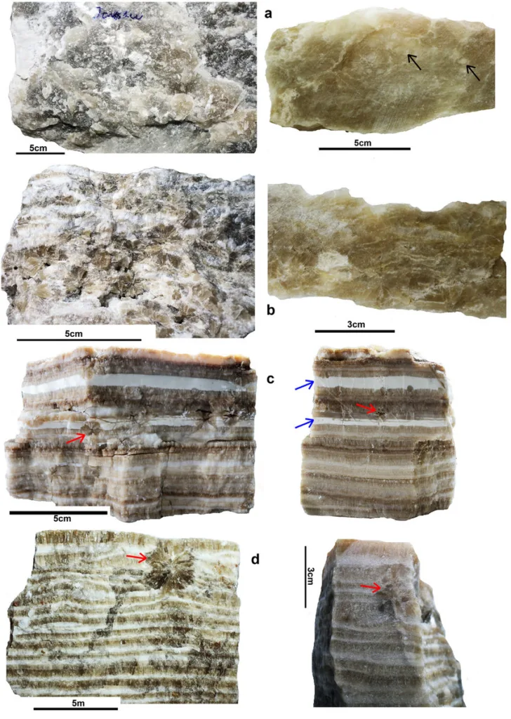 - Las evaporitas comúnmente exhiben estructuras sedimentarias distintivas, incluidas formaciones nodulares o en capas. Se pueden formar nódulos como resultado de la precipitación periódica de minerales, creando estructuras redondeadas dentro del depósito de evaporita.