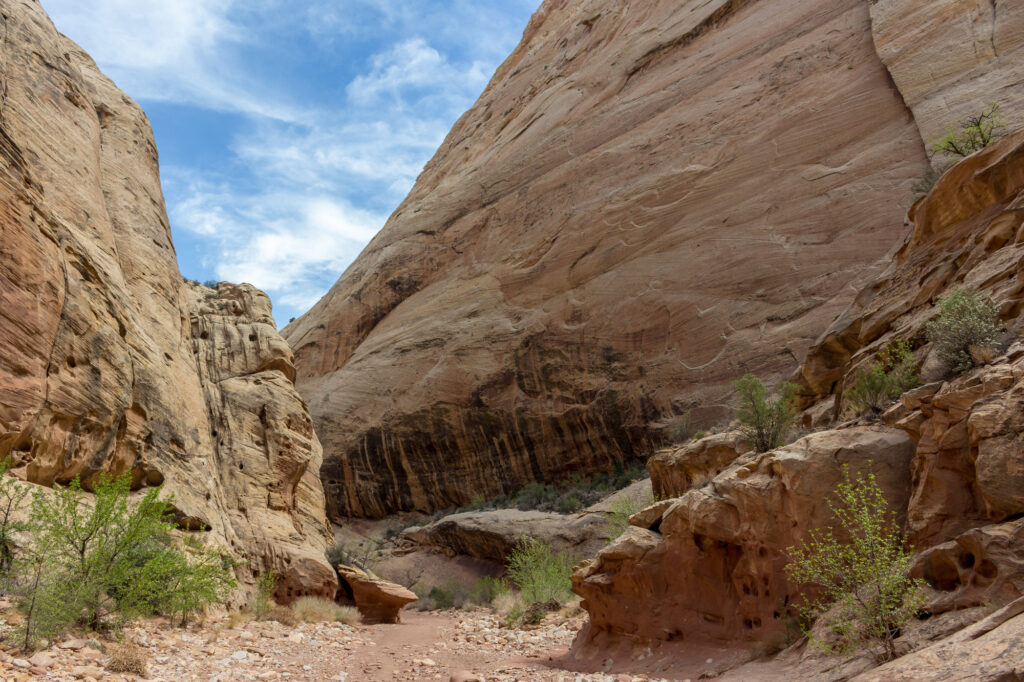 - Altération biologique : Bien que moins prononcée dans les environnements désertiques comme The Narrows, l’altération biologique causée par les racines des plantes et les micro-organismes peut contribuer à la dégradation des surfaces rocheuses. Les plantes poussant dans des crevasses ou des fissures peuvent exercer une pression à mesure qu’elles se développent, tandis que l’activité biologique peut libérer des acides qui améliorent les processus d’altération chimique.