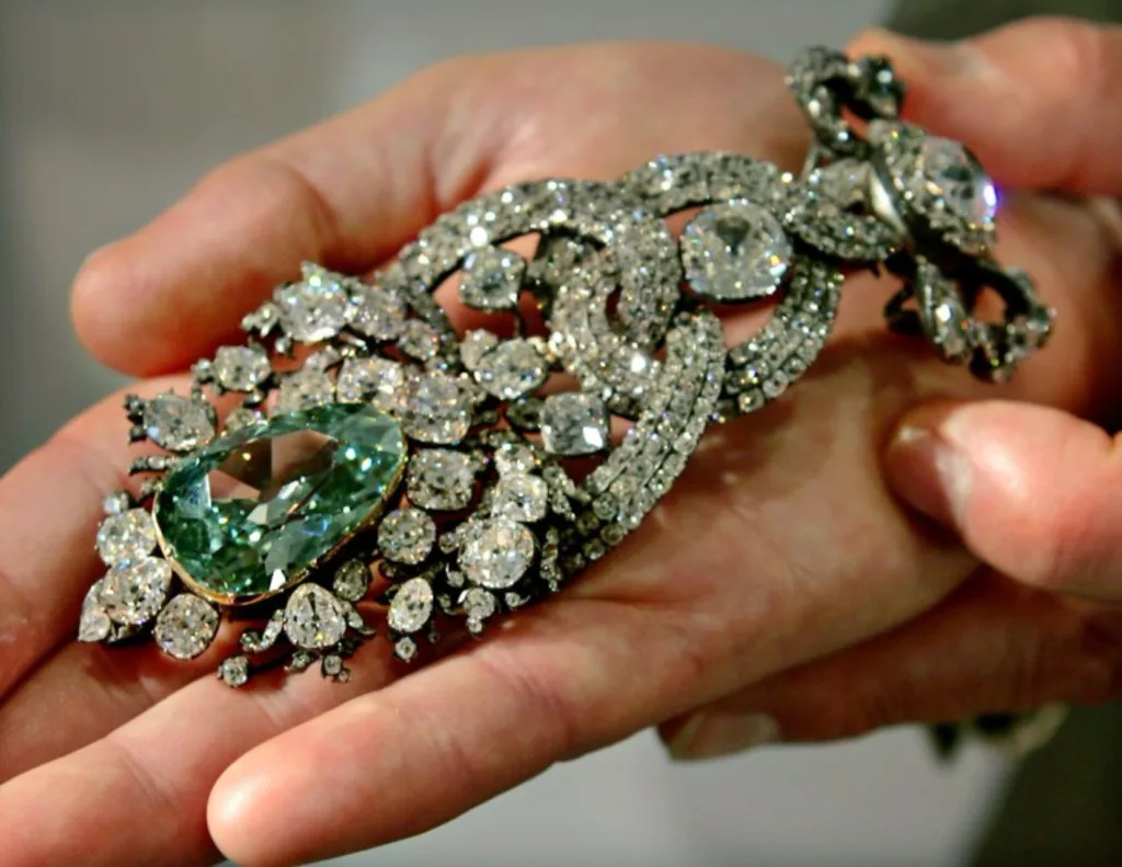 Known for its vivid green hue, the Dresden Green Diamond is one of the largest and finest natural green diamonds ever discovered. Believed to have originated from India, it was acquired by Augustus III of Poland in the 18th century and became part of the Saxon Crown Jewels. Today, it is on display at the Albertinium Museum in Dresden, Germany, where it continues to enchant visitors with its rare color and exceptional clarity.
