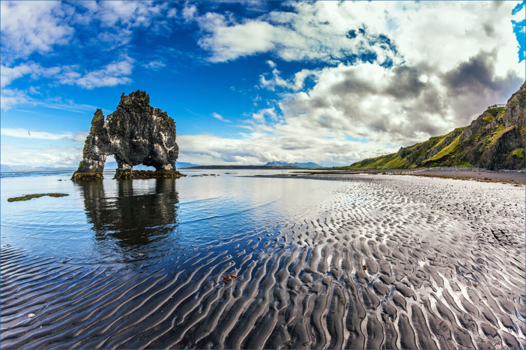 The best time to photograph Hvitserkur is during low tide. Because when the water retreats: