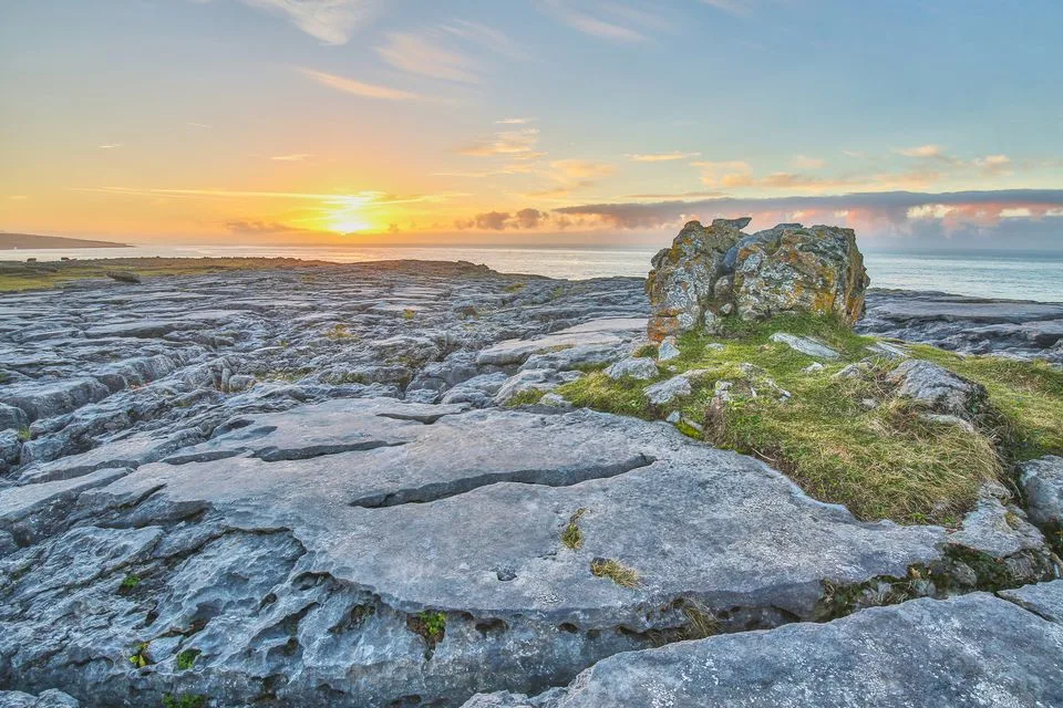 - Karst Landscape: The Burren is known for its karst landscape, primarily composed of exposed limestone bedrock shaped by erosion and glaciation.