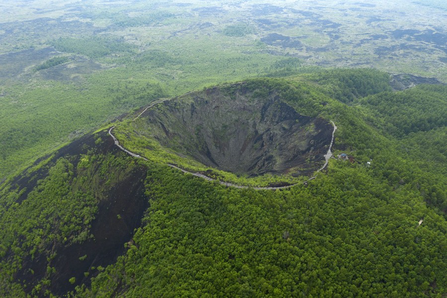 Wudalianchi Scenic Area, China: Wudalianchi Scenic Area in China is known for its unique volcanic landscapes, which include flaming mountain peaks. These peaks are formed from volcanic eruptions, and natural gas seeping from the volcanic rocks ignites upon contact with air, creating a fiery display similar to the Door to Hell.