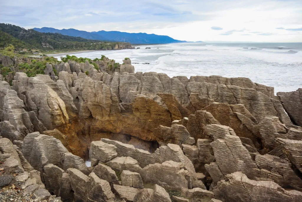 The distinctive layered structure of the Pancake Rocks is a result of the varying hardness of the limestone layers. The softer layers erode more quickly compared to the harder layers, leading to the formation of ridges and valleys. Over time, this erosion process created the pancake-like stacks that give the rocks their name.