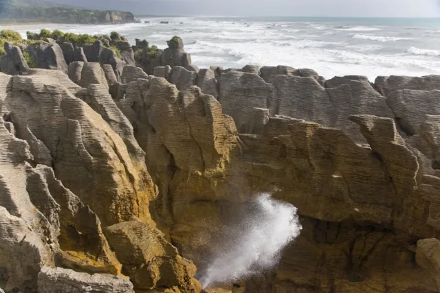 One of the most captivating features of the Pancake Rocks is the blowholes. These are vertical shafts in the rocks that connect to the sea. When the tide is high and the waves crash into the shore, water is forced up through these blowholes, creating impressive geysers that can shoot water up to 20 meters into the air. The blowholes are especially dramatic during stormy weather, when the waves are more powerful.