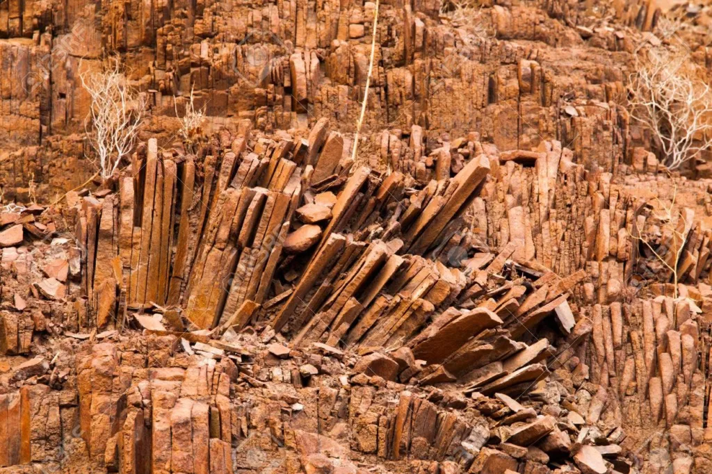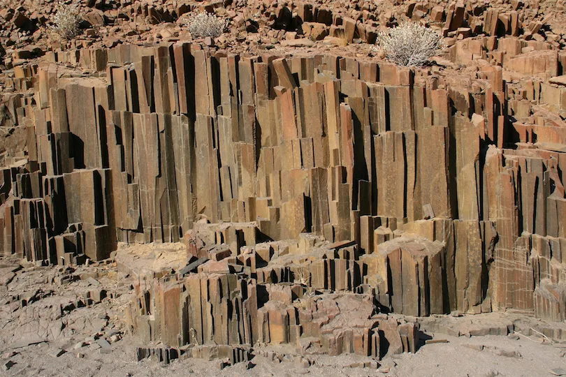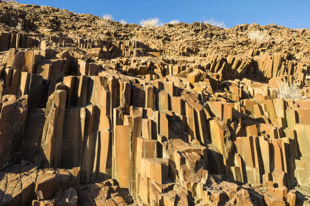 The geological formation of the Twyfelfontein Organ Pipes is a fascinating example of columnar jointing, a natural process that occurs during the cooling and solidification of certain types of lava or magma. Here’s an explanation of the formation process: