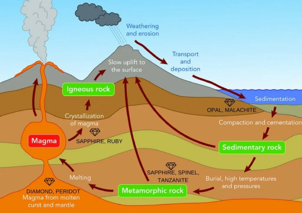 Geological events such as uplift and erosion are critical processes that bring gemstone-bearing rocks closer to the Earth’s surface, where they can be discovered, mined, and eventually turned into exquisite gemstones. Here’s an explanation of how these events work: