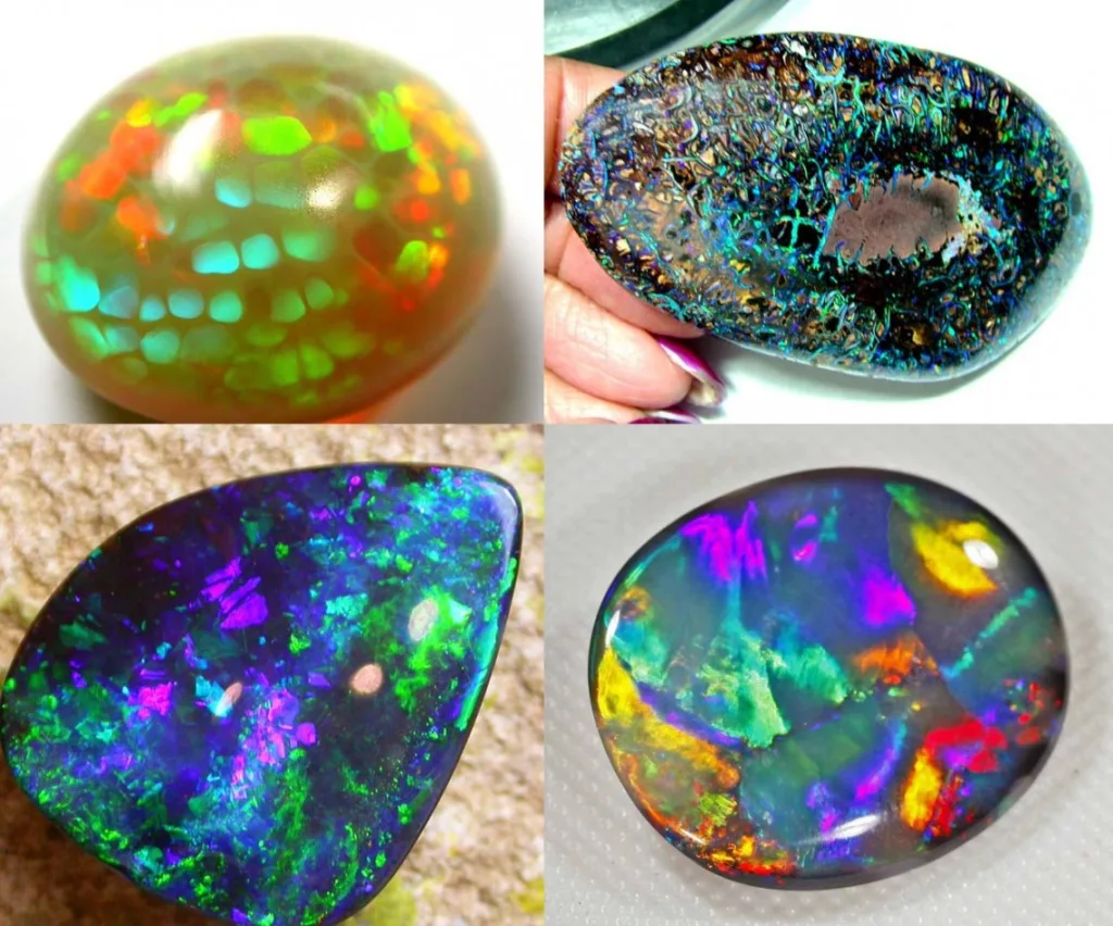 • Common Opals vs. Precious Opals: Common opals lack play-of-color, while precious opals exhibit the dazzling rainbow-like effect caused by their internal structure.