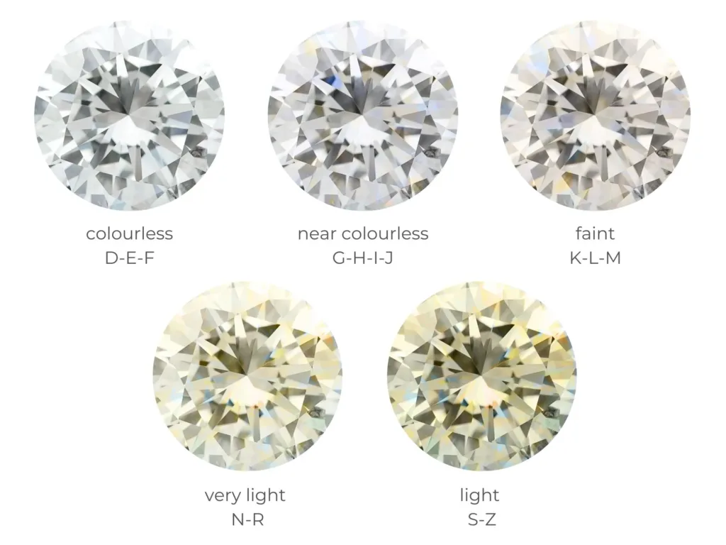 Diamonds come in a spectrum of colors, ranging from colorless to yellow and brown. The less color a diamond has, the higher its value, as pure, colorless stones are rarer.