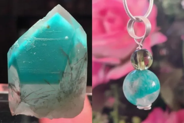 - The most distinctive feature of ajoite in quartz is its blue-green color. The color can range from a pale blue to a deep turquoise or greenish-blue, creating a striking contrast with the colorless or milky appearance of the quartz.