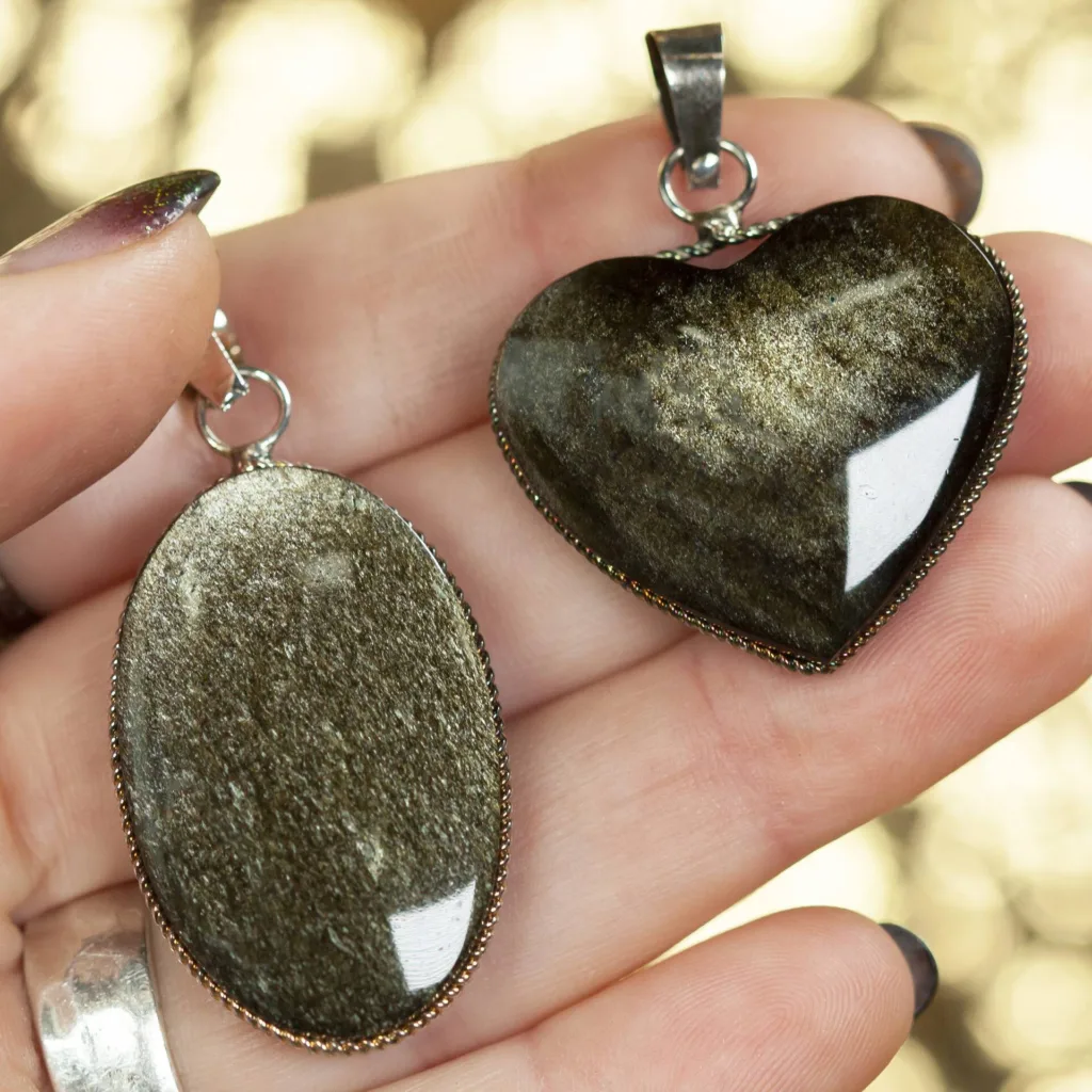 - Jewelry: One of the most popular uses of Gold Sheen Obsidian is in the creation of jewelry. Its golden sheen adds a distinctive and elegant touch to rings, pendants, earrings, and other accessories. Craftsmen often cut and polish Gold Sheen Obsidian into cabochons or beads for use in jewelry design.