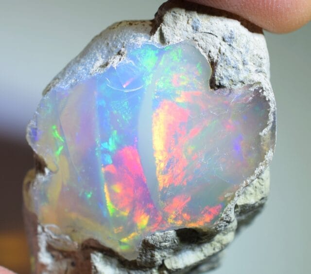 - Time and Pressure: Over millions of years, the deposited silica undergoes a process of consolidation and dehydration, gradually forming solid opal. During this time, the opal may undergo structural changes and develop its characteristic play-of-color, caused by the diffraction of light through microscopic spheres or voids within the gemstone.