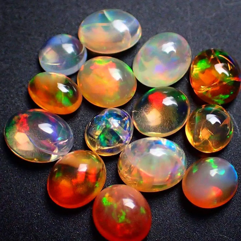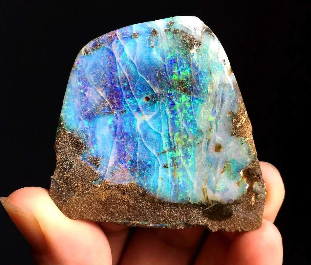 1. Opal: Opal is one of the most famous and well-loved iridescent gemstones. It displays a dazzling play of colors, often including blues, greens, pinks, and reds, due to the diffraction of light within its silica spheres.