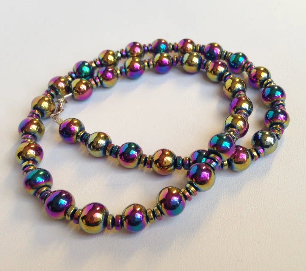 - Jewelry: Rainbow hematite is a popular choice for making jewelry due to its striking appearance. It is often used to create earrings, necklaces, bracelets, and pendants. The iridescent surface adds a vibrant and eye-catching element to jewelry designs.