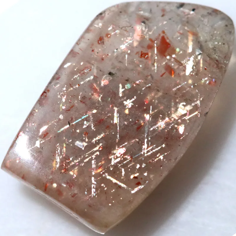Rainbow Lattice Sunstone is known for its distinctive physical and optical properties, which make it a unique and visually captivating gemstone. Here are some of its key physical and optical characteristics: