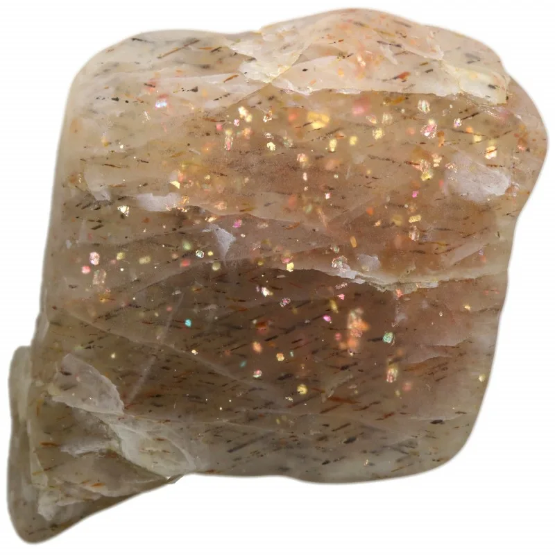 Mineral Composition: Rainbow Lattice Sunstone belongs to the feldspar mineral group, specifically as a variety of oligoclase. The mineral composition includes: