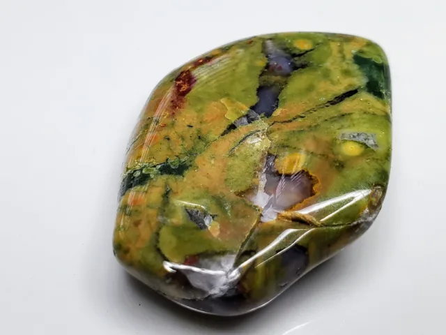 - The texture of Rainforest Jasper can be somewhat smooth when polished, showcasing the intricate patterns and colors.