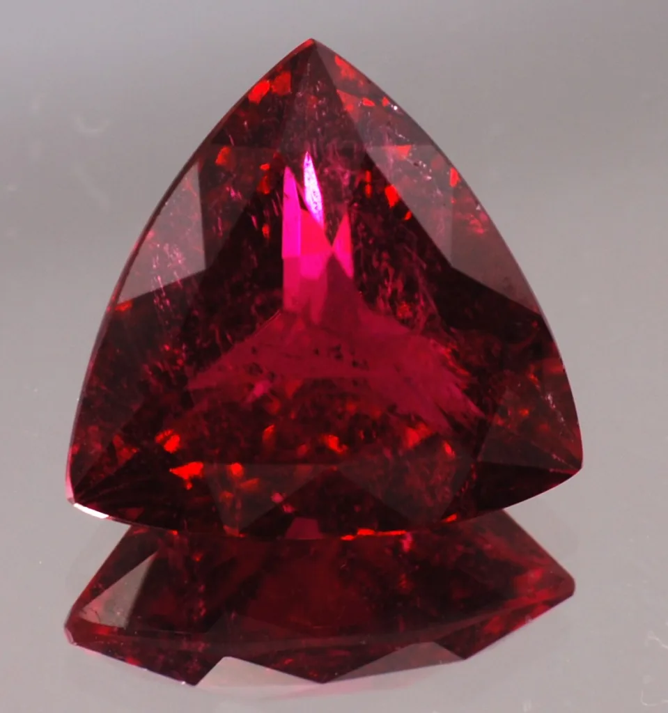 - Birefringence: Rubellite, like other trigonal minerals, exhibits birefringence, which is the difference in the refractive indices for light traveling in different directions within the crystal. This property can be observed when viewing the gem through a polarizing filter.