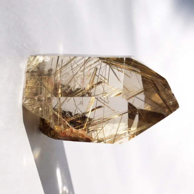 - Optical Properties: It exhibits birefringence, a property where light is split into two rays as it passes through the crystal. This can create interesting optical effects when viewing rutilated quartz.
