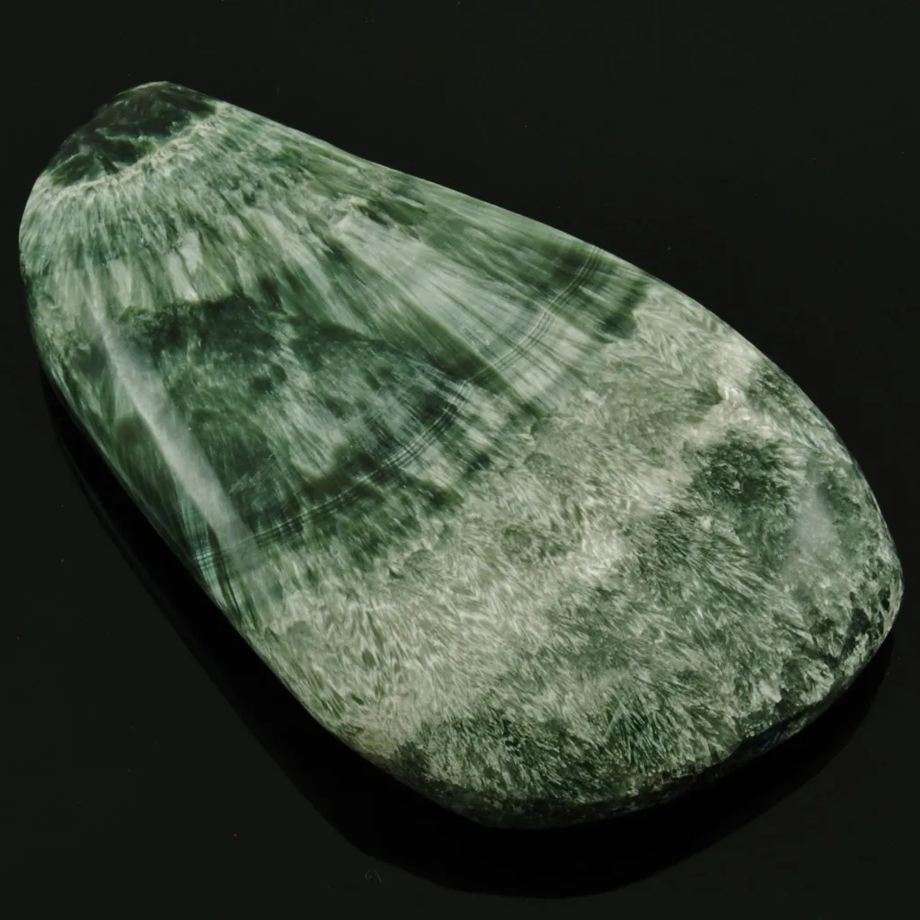 - Transparency: Seraphinite is typically opaque, meaning that light does not pass through the stone. The intricate patterns and chatoyancy are best appreciated when the stone is cut and polished as cabochons or beads.