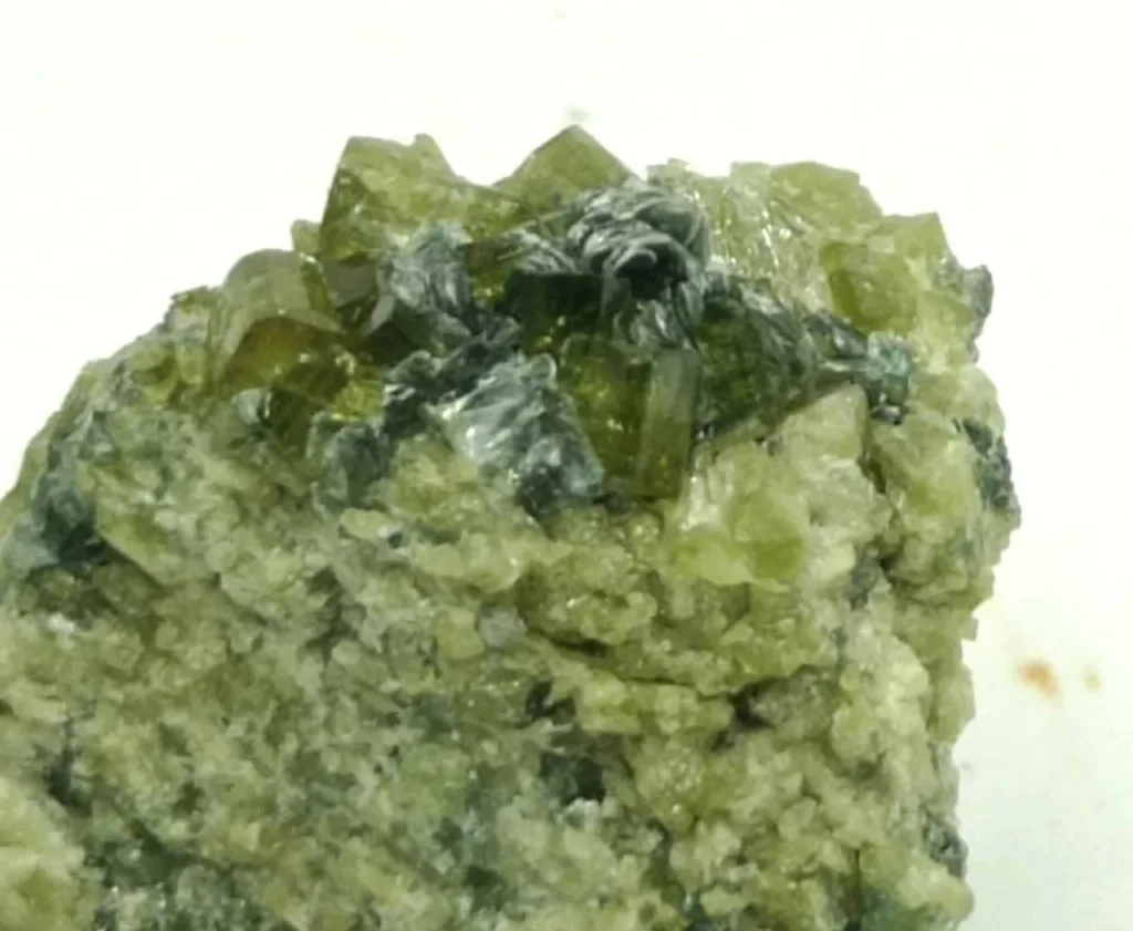 - Streak: The streak of vesuvianite is usually white or colorless.