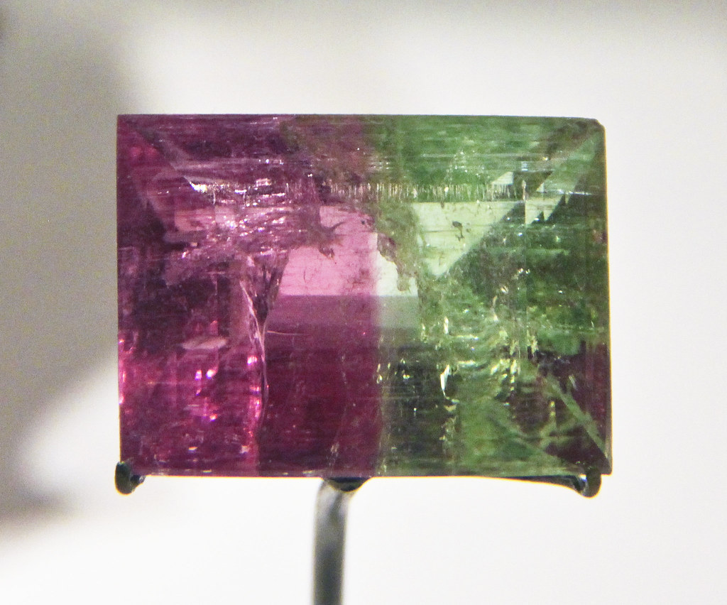 This zoning is often caused by changes in the environment during the stone’s formation. The pink coloration is linked to manganese-rich conditions, while the green layer forms later, when the environment becomes richer in chromium or vanadium. These two phases represent a shift in the chemical conditions of the crystal’s growth.