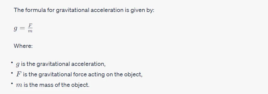 This formula implies that all objects, regardless of their mass, experience the same gravitational acceleration near the Earth’s surface. It is important to note that gravitational acceleration decreases with altitude above the Earth’s surface and increases with depth below the surface, as it depends on the distance from the center of the Earth.