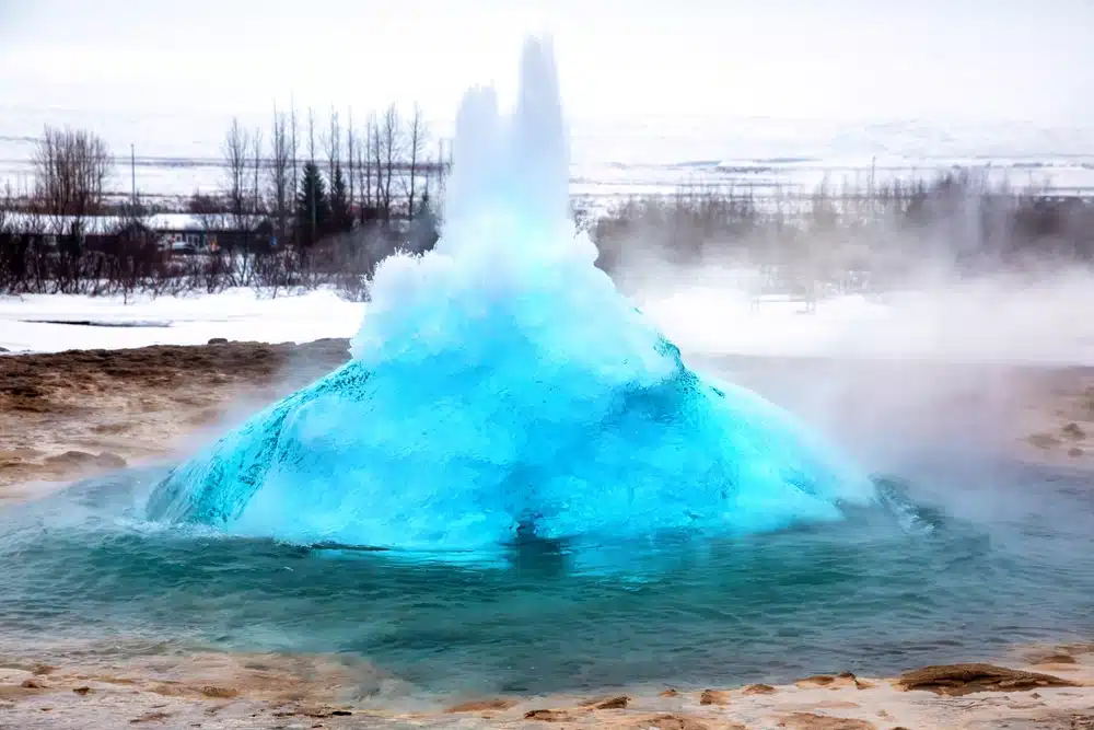 - Volcanic or geologically active areas: Geysers are commonly associated with volcanic regions or areas with high levels of geothermal activity. Volcanic activity provides a heat source for geysers, as magma and hot rocks beneath the Earth’s surface can heat groundwater, creating a geothermal reservoir. The heat from volcanic activity can also create fractures, fissures, and conduits in the rock formations, which allow for the movement of hot water and steam to the surface and the eventual eruption of a geyser.