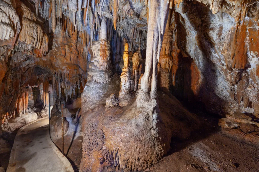 Cave formed by chemical weathering and dissolution of limestone.