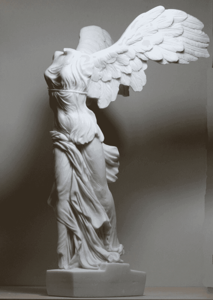 “Nike of Samothrace”: Also known as the “Winged Victory of Samothrace,” this Hellenistic marble sculpture dates back to the 2nd century BCE. Depicting the Greek goddess Nike (Victory) descending from the heavens, the sculpture is celebrated for its dynamic composition and exquisite drapery. It is displayed at the Louvre Museum in Paris, France.