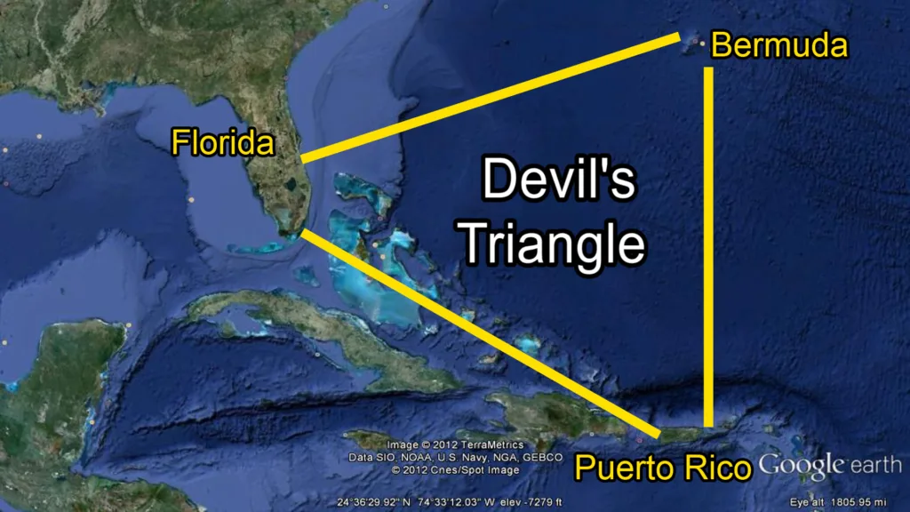 The Bermuda Triangle, also known as the “Devil’s Triangle,” is a loosely defined region in the western part of the North Atlantic Ocean. Its geographical boundaries are not universally agreed upon, but it is generally thought to be bounded by Miami, Florida; Bermuda; and Puerto Rico. Within this area, numerous ships and aircraft have disappeared under mysterious circumstances, which has led to its notoriety.