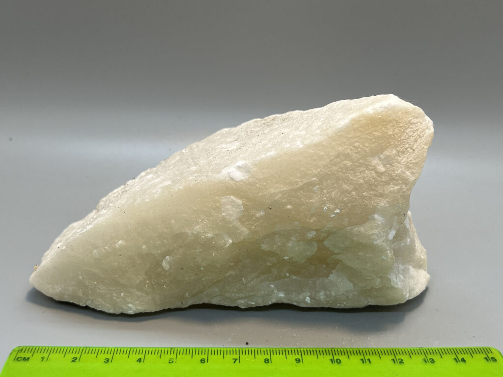 - Fine-grained, massive, white gypsum