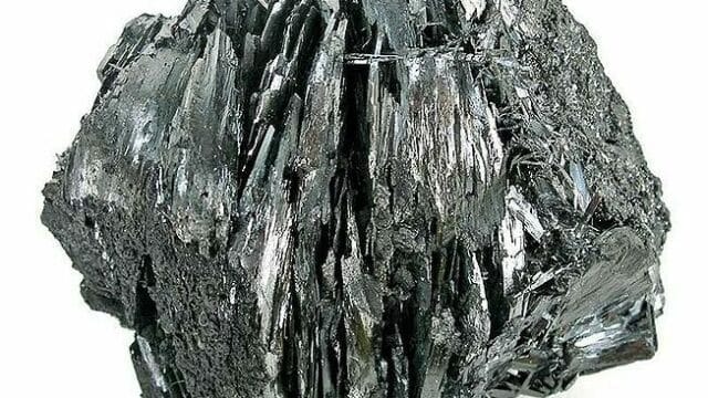 Crystallography: Orthorhombic; dipyramidal. Crystals usually long prismatic with obtuse terminations, deeply striated vertically. Often twinned. Crystals often grouped in bundles or in radiating masses; also columnar.