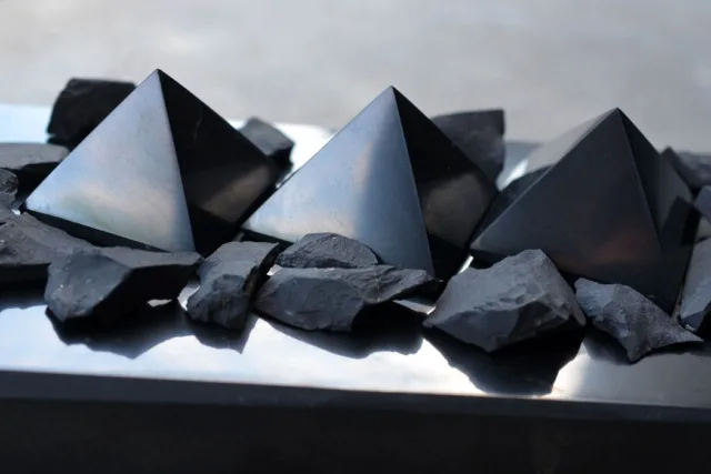 - EMF Protection: Some people believe that shungite can absorb and neutralize electromagnetic radiation (EMF) from electronic devices like computers, Wi-Fi routers, and cell phones. Shungite plates, stickers, or pyramids are often used for this purpose, although scientific evidence supporting its effectiveness is limited.