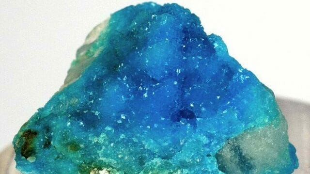 Turquesa é um membro do fosfato mineral com fórmula química CuAl6 (PO4)4(OH) 8·4H2O. A turquesa é um mineral opaco, azul a verde, que é um fosfato hidratado de cobre e alumínio. Contas feitas de turquesa que datam de cerca de 5000 aC foram recuperadas na Mesopotâmia (atual Iraque). Este mineral geralmente ocorre em formas maciças ou microcristalinas, como incrustações ou nódulos, ou em veios. Os cristais são raros; quando encontrados, eles ocorrem como prismas curtos, muitas vezes transparentes. A cor turquesa varia do azul-celeste ao verde, dependendo da quantidade de ferro e cobre que contém. A turquesa ocorre em ambientes áridos como um mineral secundário provavelmente derivado da decomposição de apatita e alguns sulfetos de cobre. Uma das primeiras pedras preciosas a serem extraídas. É incomum e precioso nos graus mais finos e tem sido oferecido como gema e pedras ornamentais por centenas de anos por causa de seu tom único. Recentemente, a turquesa, como muitas outras joias opacas, foi desvalorizada com o acesso ao mercado de tratamentos, imitações e sintéticos.