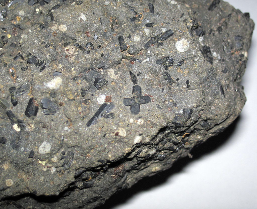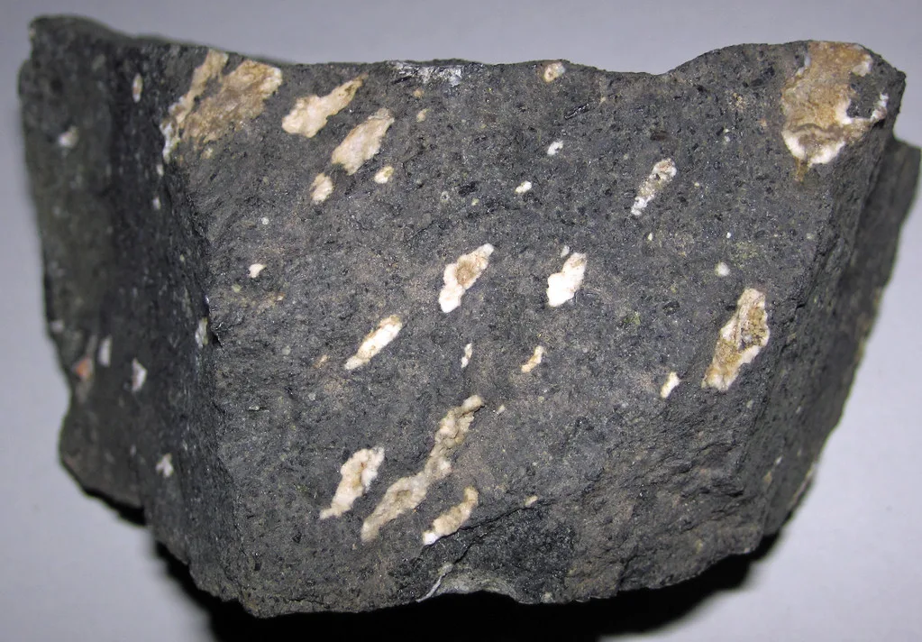 - Light Color: Phonolite is generally light in color, ranging from gray to light pink or beige. The light color is a result of the dominance of minerals like feldspar and nepheline, which are typically light-colored minerals.