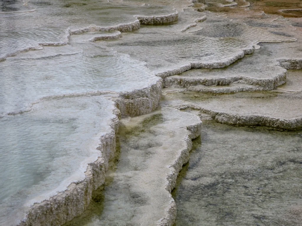 Hot springs are a common environment for travertine formation. The warm water brings calcium carbonate to the surface, and as the water cools and evaporates, the mineral precipitates, forming layers of travertine. Over time, these layers can accumulate and harden into the rock we recognize as travertine.
